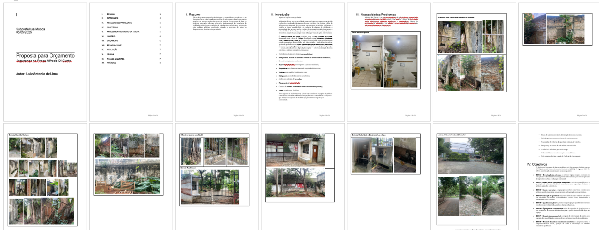 Propomos um projeto de reestruturação da segurança da Horta das Flores com os seguintes pontos: - Reforma/reconstrução de muros, cercas e portões; - Instalação de um sistema de câmeras de segurança, preferencialmente conectados ao Smart Sampa; - Reforma da guarita da entrada de carros com instalação de água e energia; - Disponibilização de zeladores dentro do projeto Zeladores de Praça da Prefeitura de São Paulo, que inclusive não possui nenhum zelador na subprefeitura Mooca enquanto outras subprefeituras chegam a ter até 21 zeladores na região como pode ser confirmado em https://capital.sp.gov.br/web/desenvolvimento/w/cursos/operacao_trabalho/143205
