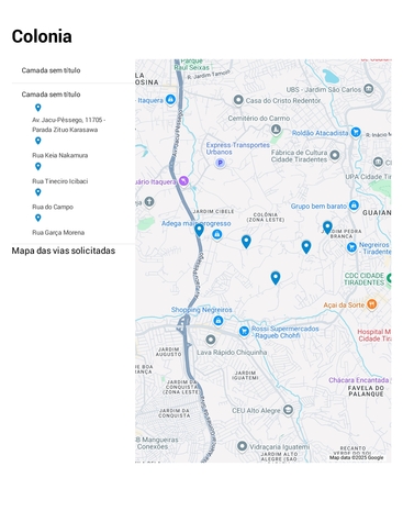 Solicitamos ampliação, pavimentação e calçamento de vias, além da implantação de rede de esgoto e água no Jardim Colônia (Zona Leste/SP), visando garantir mobilidade, acesso a serviços públicos e dignidade à população local.