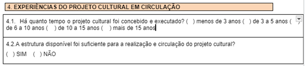 4.20. O projeto cultural foi atendido ou apoiado por programas, projetos e ações de governo (municipal, estadual ou federal) ou de organizações não governamentais? Cite quais são. Se sim, especifique como.