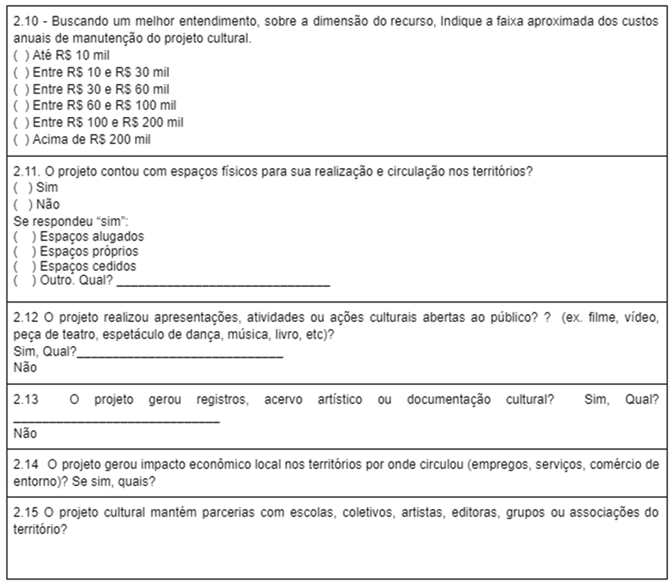4.16.O projeto cultural fomentou as economias solidária e criativa nos territórios por onde circulou? Se sim, especifique como. 4.17. O projeto cultural realizou atividades culturais gratuitas e abertas ao público durante sua circulação? Se sim, especifique como.
