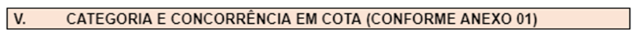 Marque a categoria para inscrição (observar quais as categorias previstas e exigências para comprovação no Anexo 02 e no Edital):
