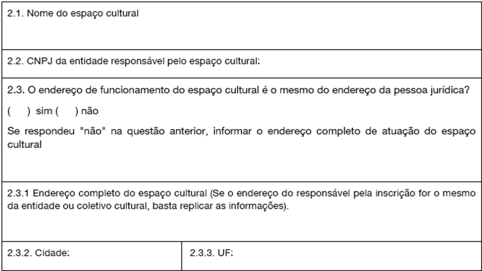 *Em caso de inscrições por pessoa jurídica (com CNPJ) ou grupos/coletivos culturais inscritos por CPF, preencher a tabela abaixo indicando a composição de pessoas com deficiência do quadro dirigente ou do grupo.